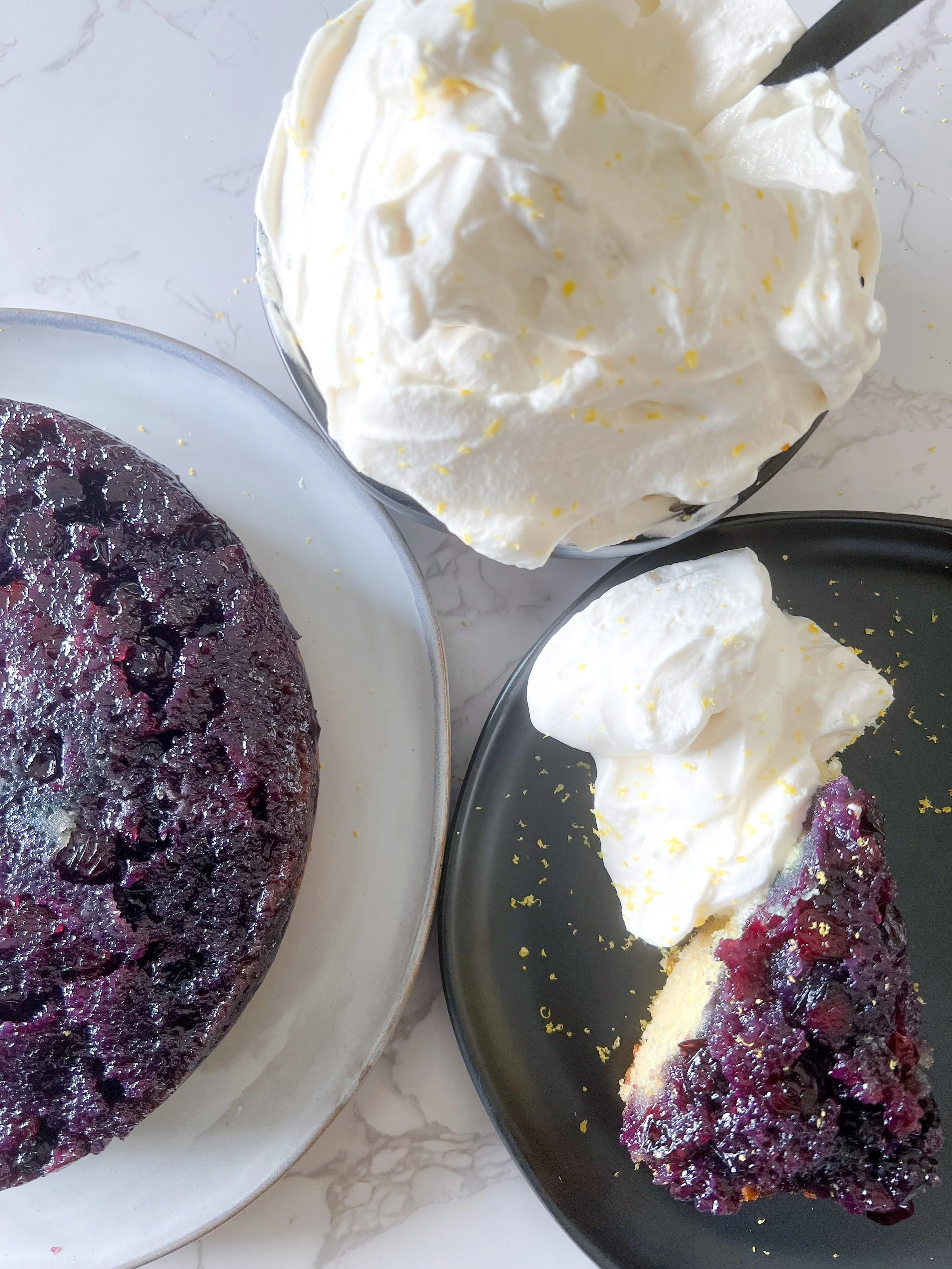 Blueberry Upside Down Cake with Lemon Whipped Cream